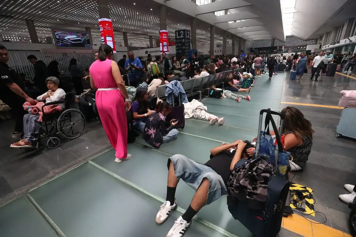 Salas de espera saturadas y pasajeros durmiendo en el suelo evidencian el caos en el AICM. Foto: Luis Castillo/ La Jornada