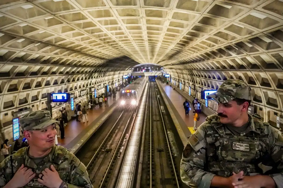 Washington. Un tren pasa mientras la Guardia Nacional del Distrito de Columbia patrulla la estación de metro Gallery Place-Chinatown en la capital estadunidense. Foto Ap / Julia Demaree Nikhinson