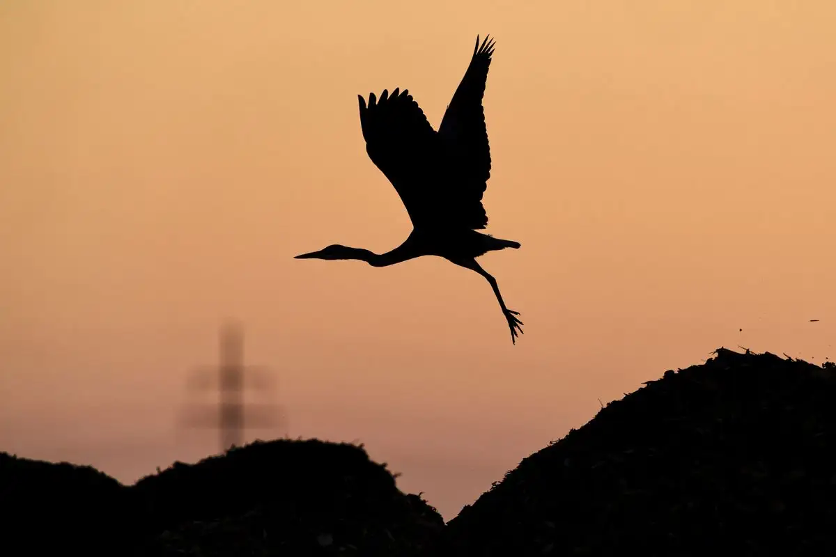 Frankfurt. Una garza alza el vuelo desde una montaña de estiércol en esta ciudad alemana. Foto Ap / Michael Probst