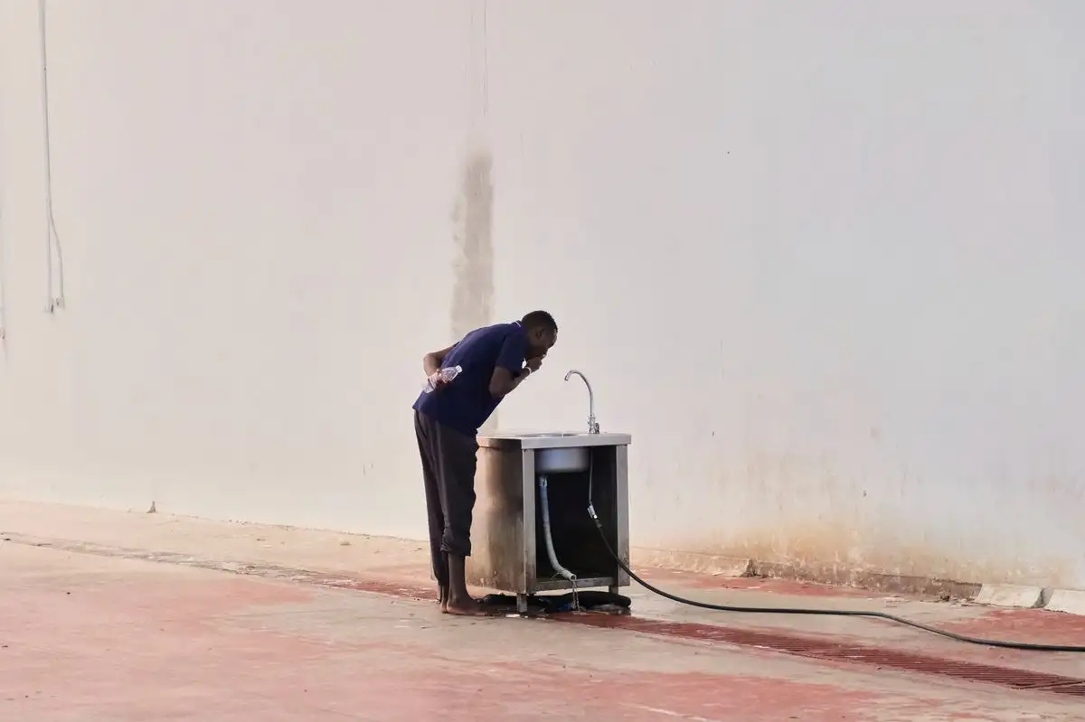 Agia. Un migrante que llegó recientemente a la isla de Creta bebe agua mientras se encuentra bajo custodia en un refugio temporal en esta aldea cercana a la ciudad de Chania, en el sur de Grecia. Foto Ap / Giannis Angelakis