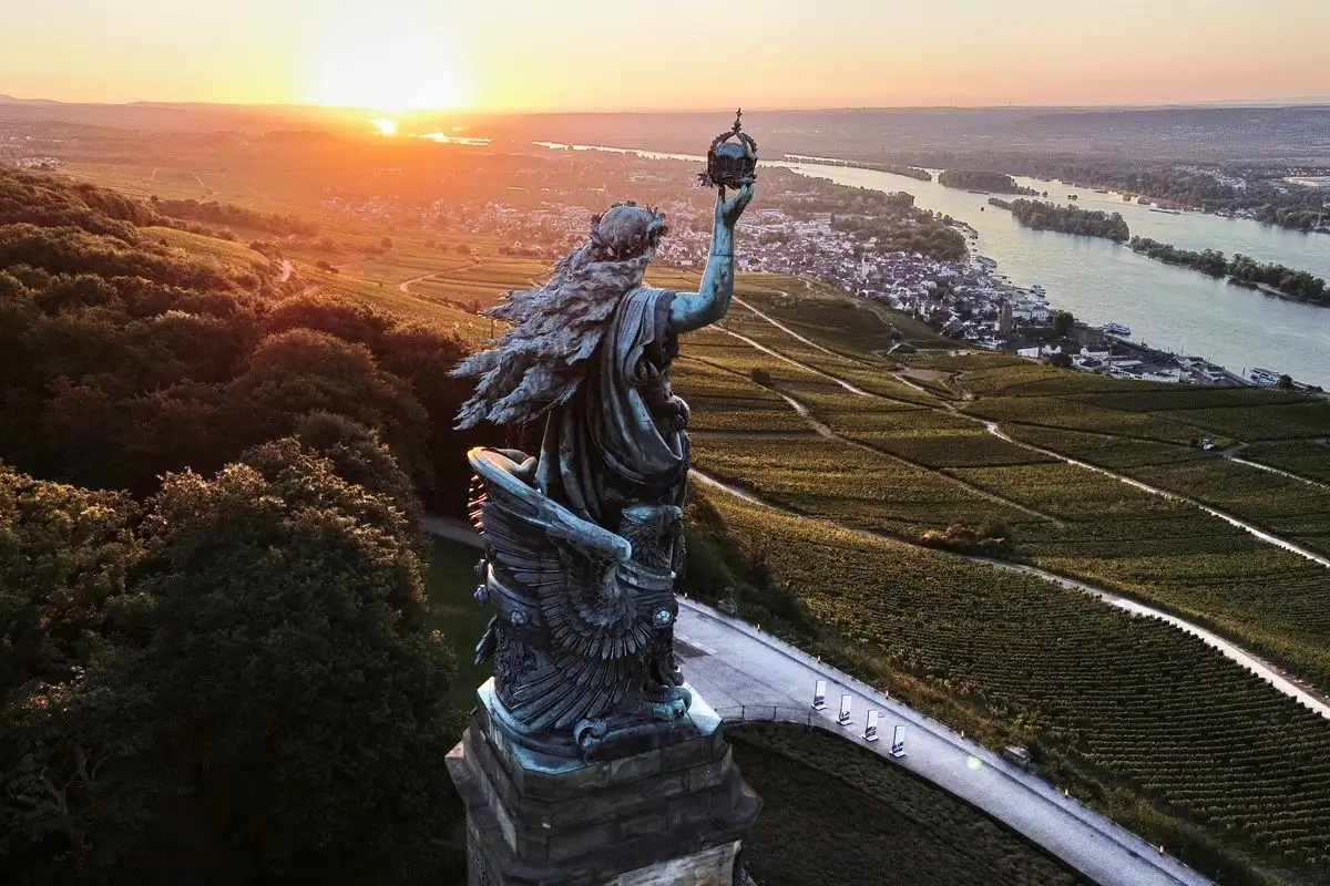 Rüdesheim. La figura de Germania decora la cima del monumento de Niederwald, construido para conmemorar la fundación del Imperio Alemán en 1871, sobre los viñedos y la ciudad de Rüdesheim, Alemania. Foto Ap / Michael Probst