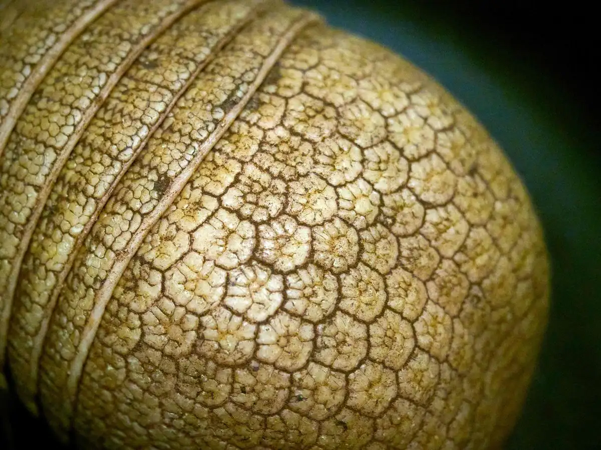 Saint Aignan. Vista detallada del lomo de una cría de armadillo albino hembra nacida el 7 de mayo de 2025 dentro de su recinto, en el Zoológico de Beauval, Francia. Esta es la primera vez que se observa en el mundo un armadillo de tres bandas con albinismo. Foto Afp / Guillaume Souvant