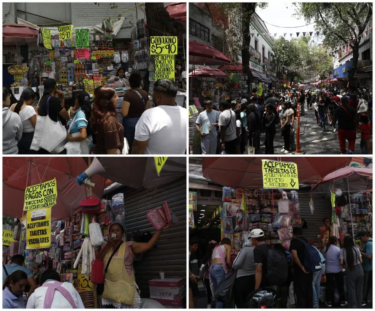 Ciudad de México. El Centro Histórico luce abarrotado debido a las compras de último momento de útiles escolares. Foto