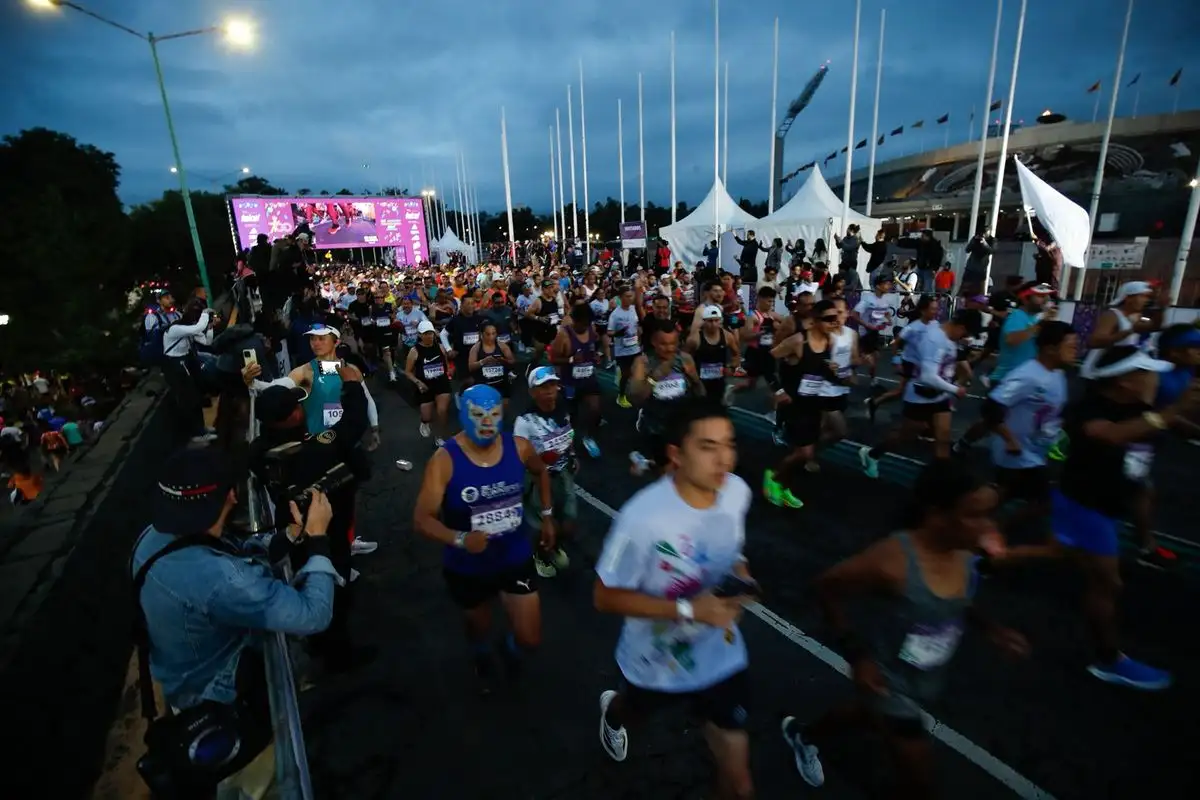 Ciudad de México. Los participantes de la 42 edición del Maratón de la Ciudad de México salen del Estadio Olímpico Universitario rumbo al Zócalo. Foto Cristina Rodríguez