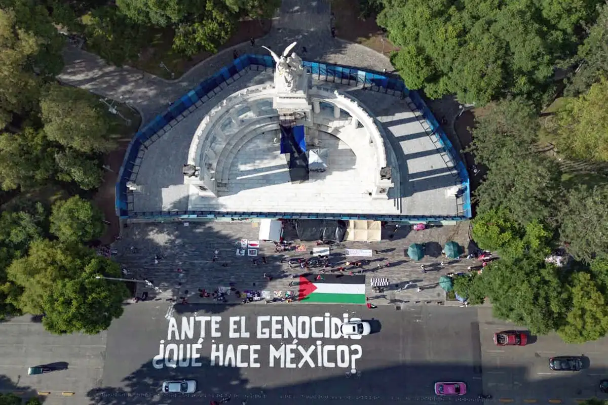 Ciudad de México. Realizan una “Ola de acción por la vida y la liberación de Palestina” en la explanada del Hemiciclo a Juárez. Foto Marco Peláez