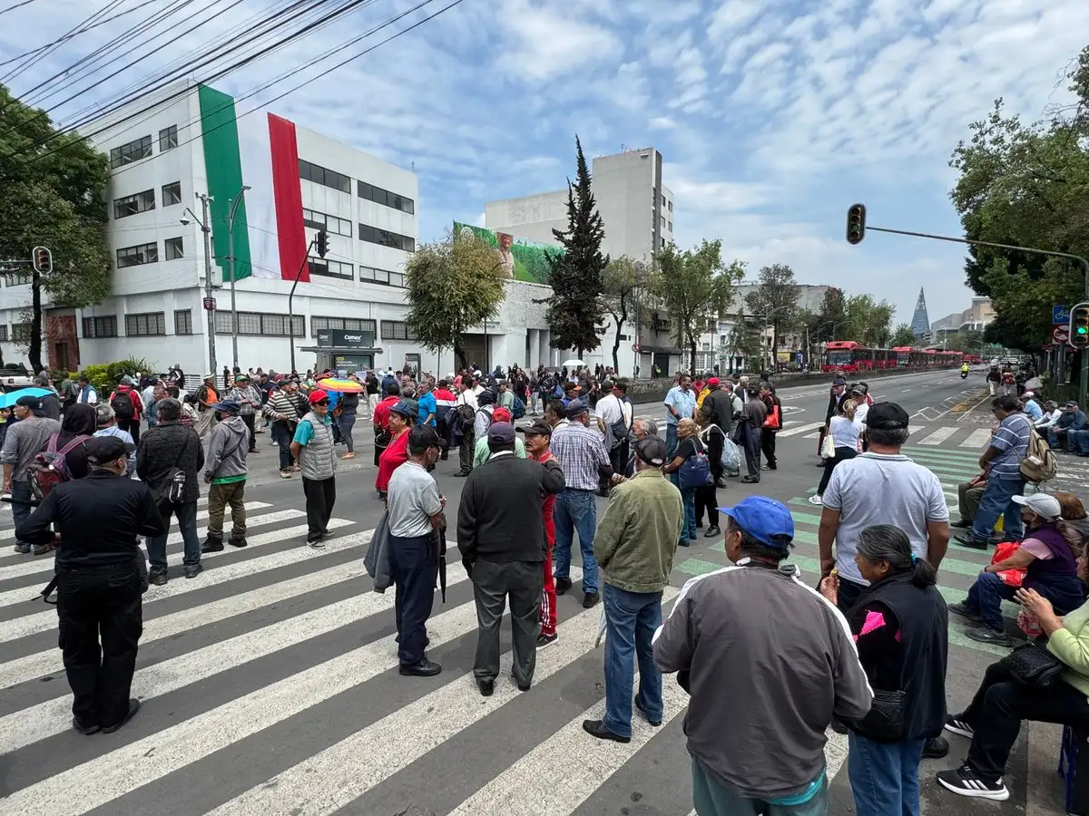 Ciudad de México. Ex trabajadores de la Ruta 100 bloquean Insurgentes, a la altura de Buenavista, para exigir ser atendidos en sus comisiones para su finiquito. El servicio del Metrobús se encuentra afectado. Foto Alfredo Domínguez