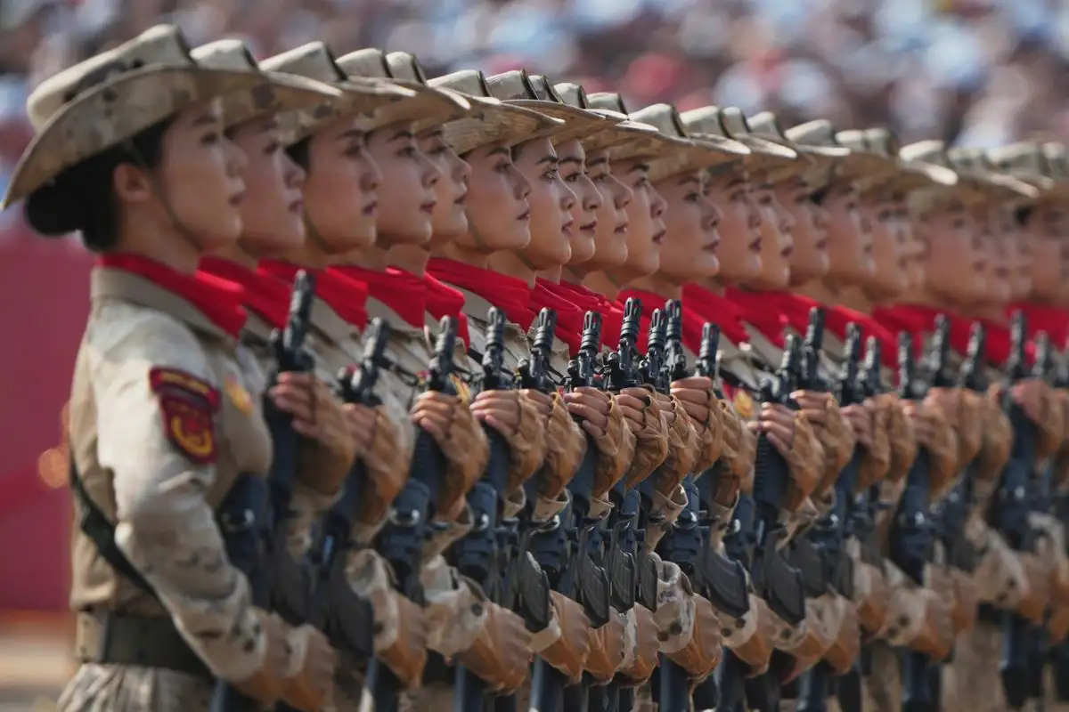 Pekín. Personal militar participa en el desfile para conmemorar el 80.º aniversario de la rendición de Japón en la Segunda Guerra Mundial, celebrado frente a la Puerta de Tiananmén la capital china. Foto