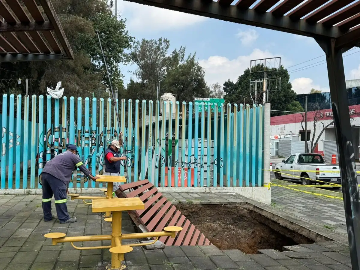 Ciudad de México. Se genera nuevo socavón en el Parque Nacional, ubicado en el camellón central de la avenida Wilfrido Massieu, en la alcaldía Gustavo A. Madero. Foto Alfredo Domínguez