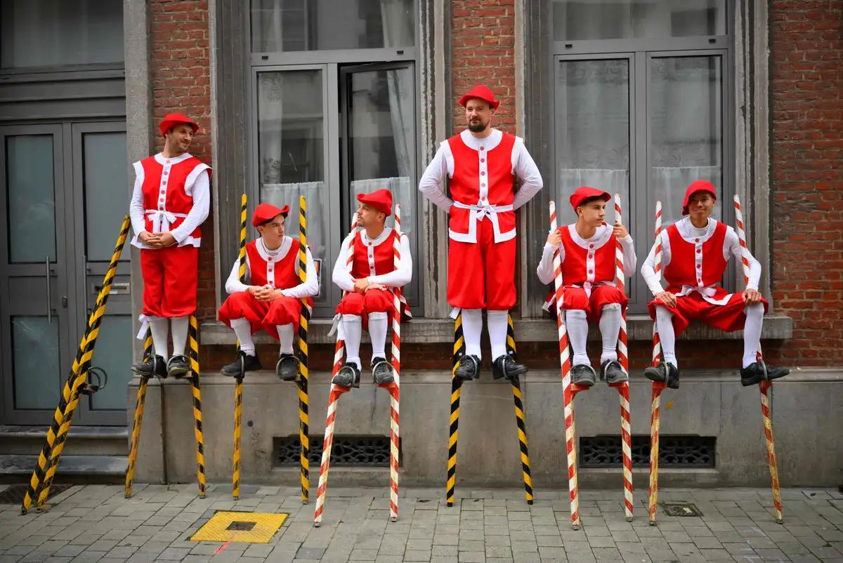 Namur. Personas en zancos esperan para competir en el torneo de Zancudos de Oro, una prueba organizada en el marco del Festival de Valonia, en la plaza Saint-Aubain de esta ciudad belga. Las competiciones de zancudos de Namur se incluirán en la lista del patrimonio de la UNESCO. Foto Afp / John Thys