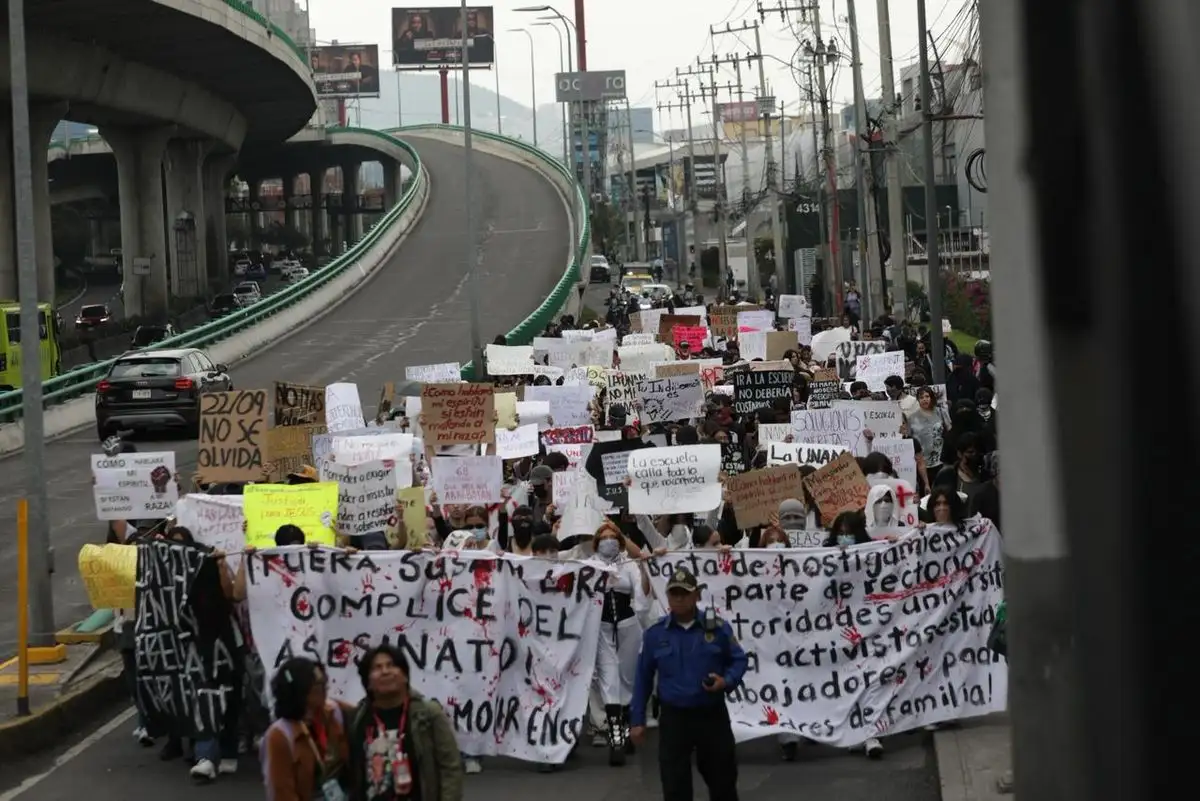 Ciudad de México. Alumnos de CCH Sur marchan sobre Periférico rumbo a Rectoría de Ciudad Universitaria, para protestar por la inseguridad en el plantel tras la muerte de un estudiante el pasado lunes.