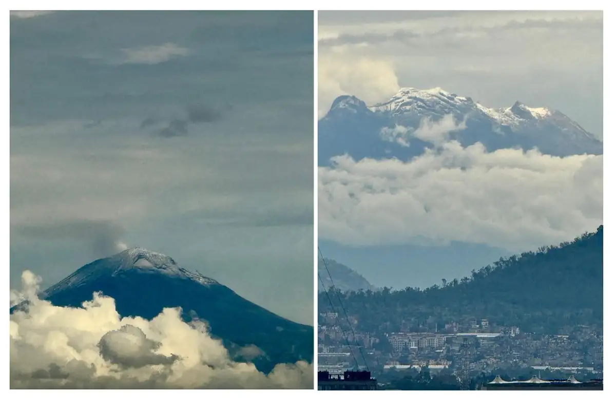 Vista de los volcanes Popocatépetl e Iztaccíhuatl desde la redacción de La Jornada. Foto: Pablo Espinosa