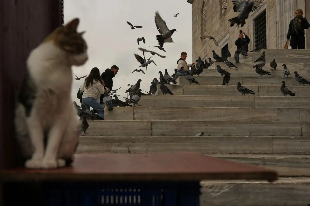 Estambul. Personas suben por la escalera principal de la Yeni Camii o “Mezquita Nueva” en Eminonu, en esta ciudad turca. Foto Ap / Francisco Seco