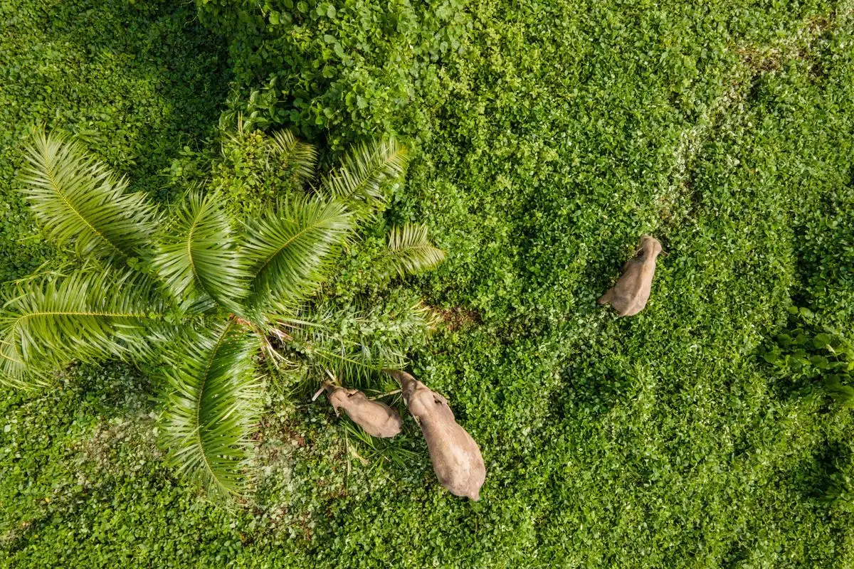 Peunaron. Un pequeño grupo de elefantes de Sumatra se alimentan cerca de plantaciones de aceite de palma en esta zona al este de la provincia de Aceh, en Indonesia. Foto Afp / Chaideer Mahyuddin