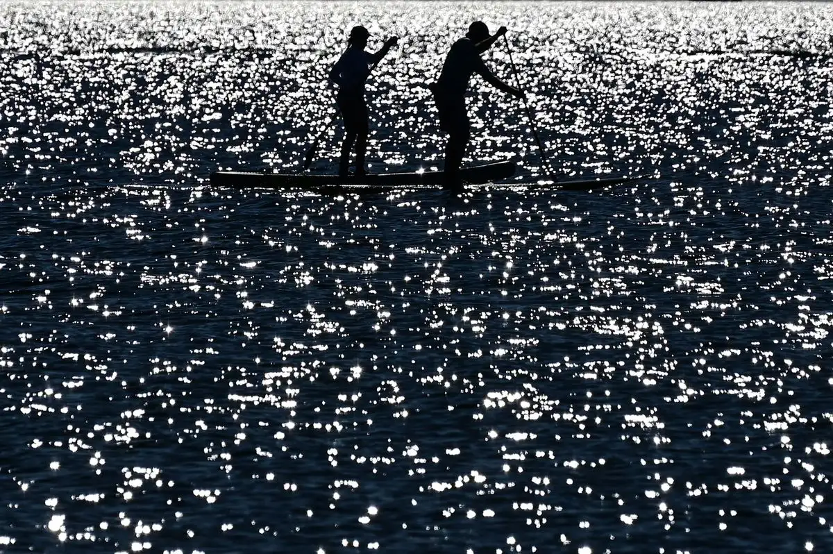 Sérignan. Dos personas reman en tablas en esta playa ubicada al sur de Francia. Foto Afp / Gabriel Bouys
