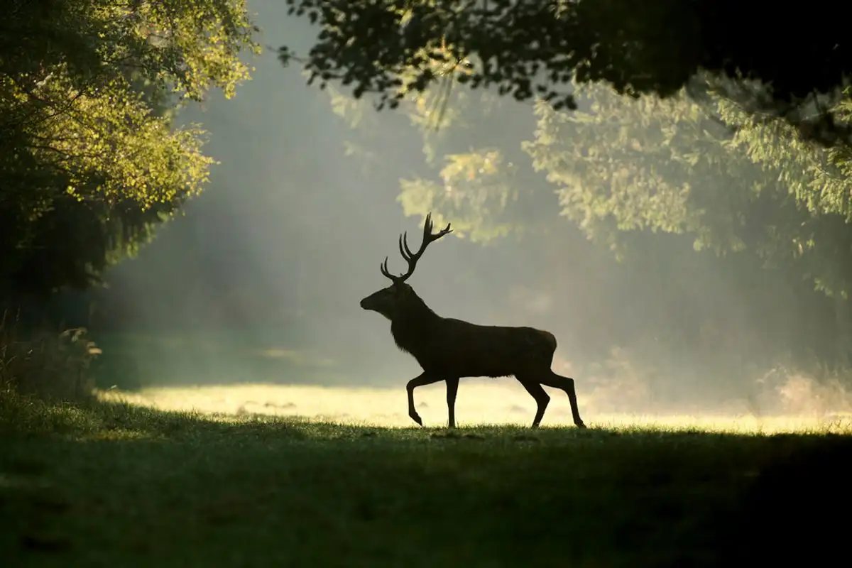 Frankfurt. La silueta de un ciervo que camina por un bosque de la región de Taunus en esta ciudad alemana. Foto Ap / Michael Probst