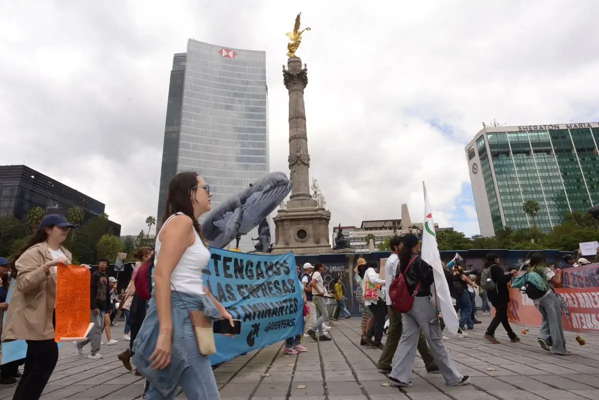 Ciudad de México. Distintas organizaciones de la sociedad civil, que trabajan por la defensa del territorio, la naturaleza y la justicia climática, participaron en la Primera Marcha por el Clima, la Vida y el Futuro. El contingente avanzó de la Estela de Luz al Monumento a la Revolución, donde se realizaron diversas actividades. Foto Sergio Hernández Vega