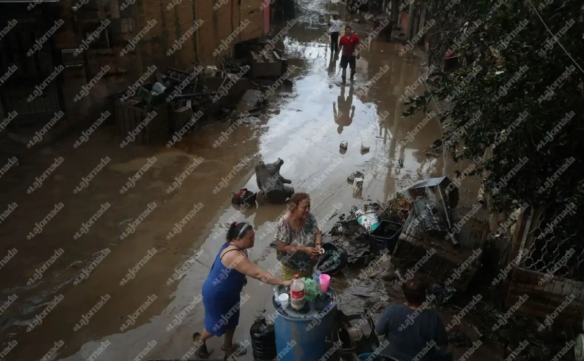 Poza Rica, Veracruz. Pobladores intentan rescatar algunas pertenencias luego de que el río Cazones se desbordara y provocara inundaciones en sus viviendas. Foto Alfredo Domínguez