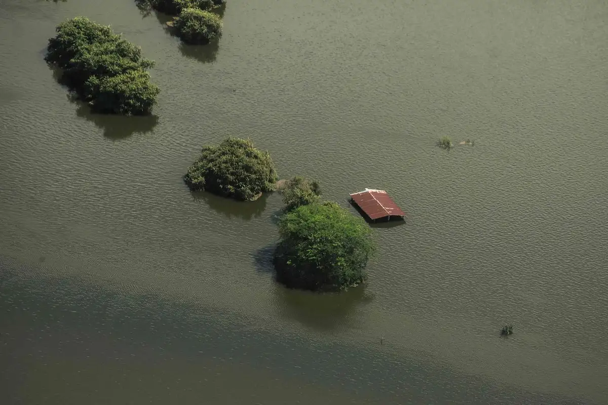 Poza Rica. Una casa inundada, captada durante un sobrevuelo de la Marina de México, tras las fuertes lluvias en esta ciudad de Veracruz. Las inundaciones generadas por las precipitaciones por las lluvias torrenciales han causado la muerte de al menos 42 personas en México en los últimos días y han dejado un rastro de destrucción, informó el gobierno. Foto Héctor Quintanar / Afp