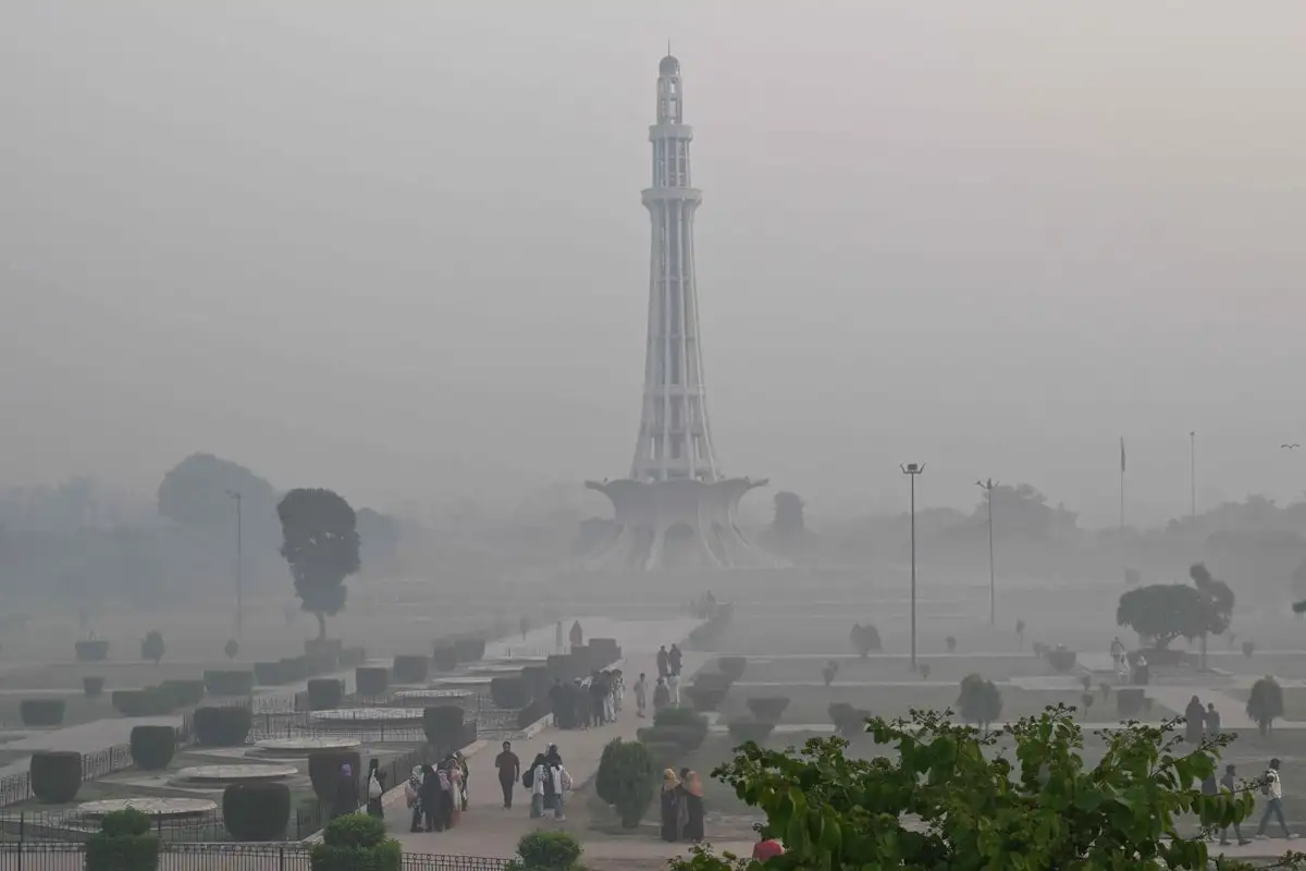 Lahore. Personas visitan un parque en medio de una intensa contaminación en esta ciudad pakistaní. Foto Afp / Arif Ali