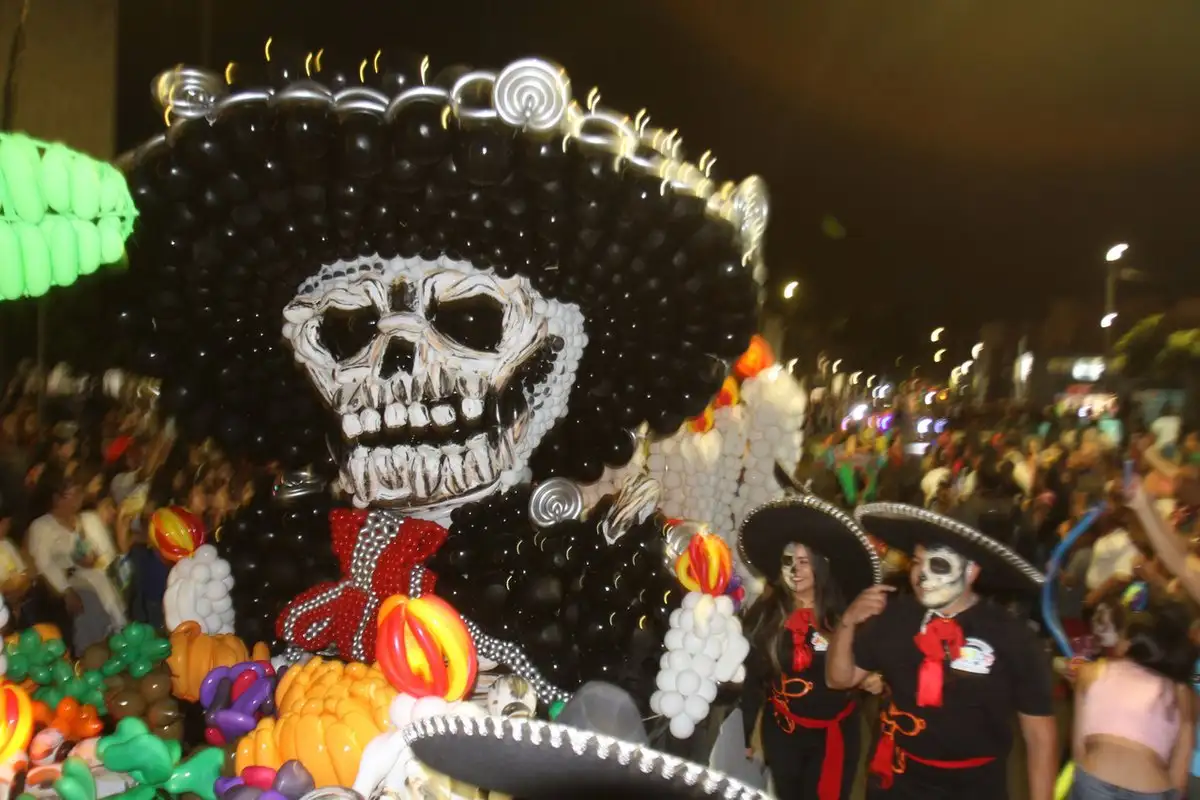Guadalajara. Miles de personas se dieron cita, la noche de este sábado, a lo largo de la avenida Hidalgo para presenciar el desfile del Día de Muertos en la capital jalisciense, que recorrió desde avenida Chapultepec hasta el centro de la ciudad. Cientos de artistas, bailarines, músicos y voluntarios participaron con coloridos disfraces y rostros pintados. Foto Arturo Campos Cedillo
