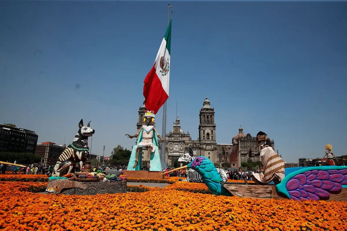 Ciudad de México. Capitalinos disfrutan de la exhibición de la megaofrenda en el Zócalo. Foto Cristina Rodríguez