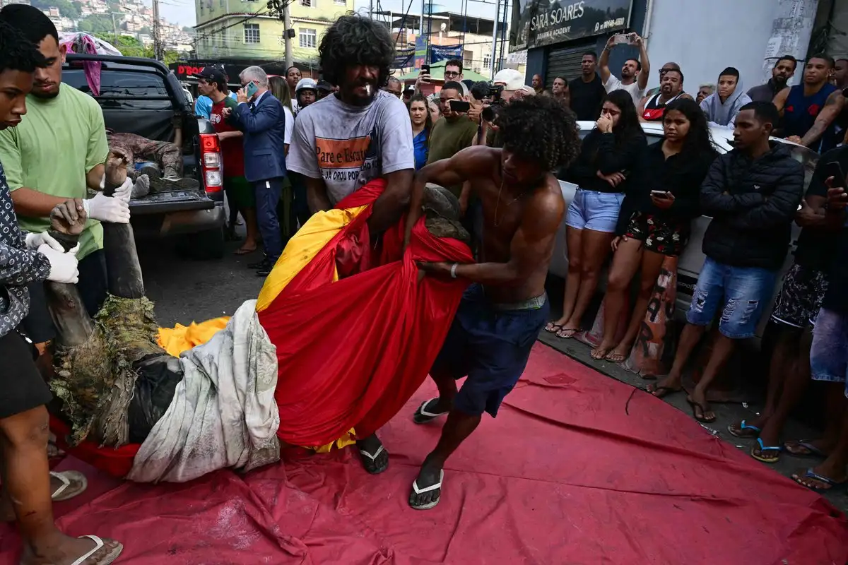 29 de octubre de 2025. En Río de Janeiro, Brasil, los habitantes de las favelas del Complexo da Penha y del Alemão denuncian una masacre tras un operativo policial que dejó más de un centenar de muertos. Organizaciones sociales exigen esclarecer los hechos y acusan al Estado brasileño de permitir una política de exterminio en las comunidades más pobres.
