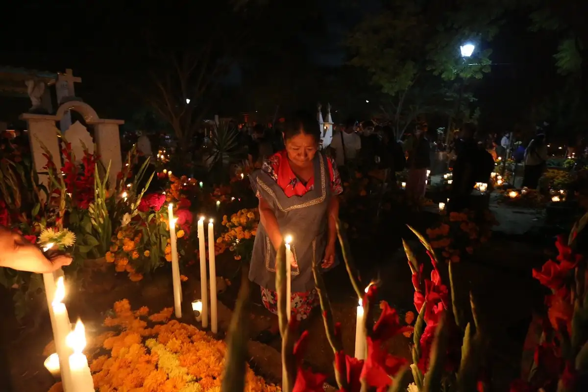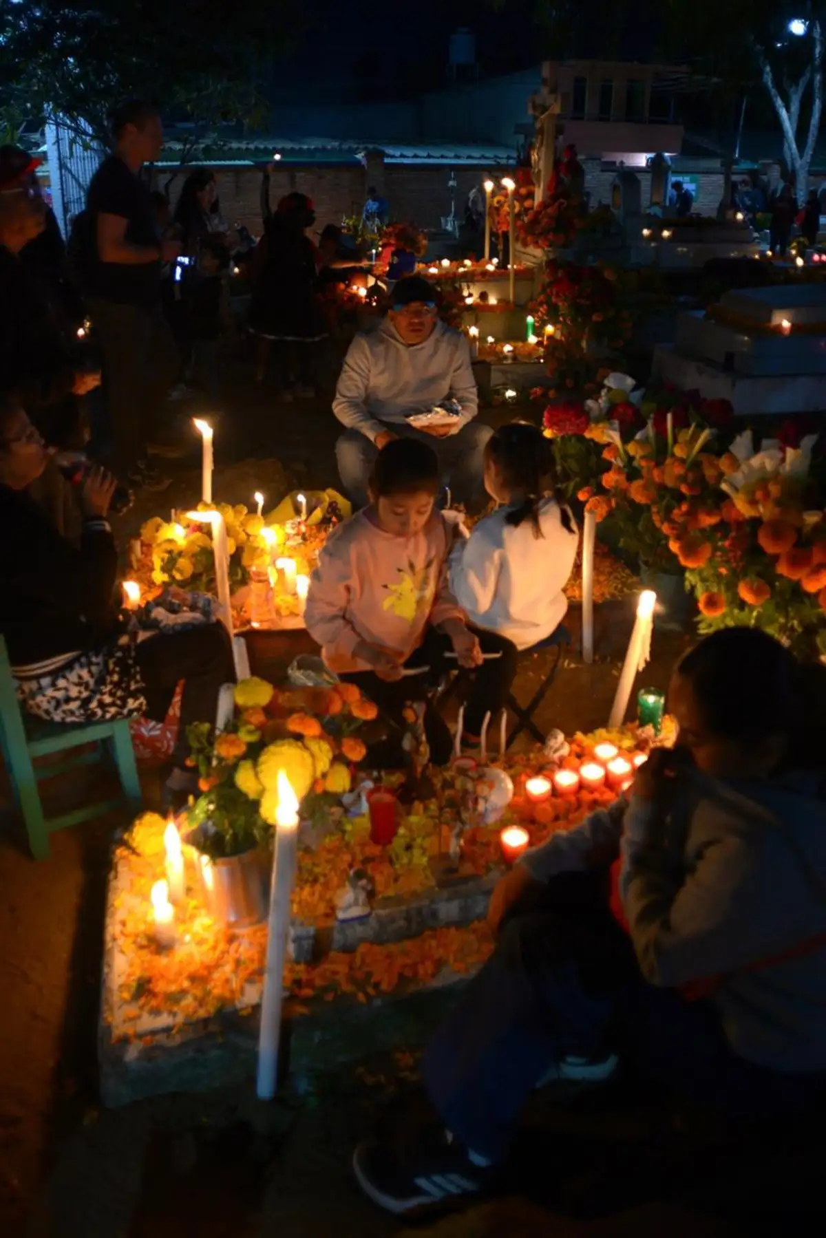 En las tumbas colocan flores de cempasúchil y velas de parafina para poder alumbrar el regreso de sus familiares al mundo de los vivos. La actividad dura toda la noche del viernes y madrugada del 1 de noviembre.