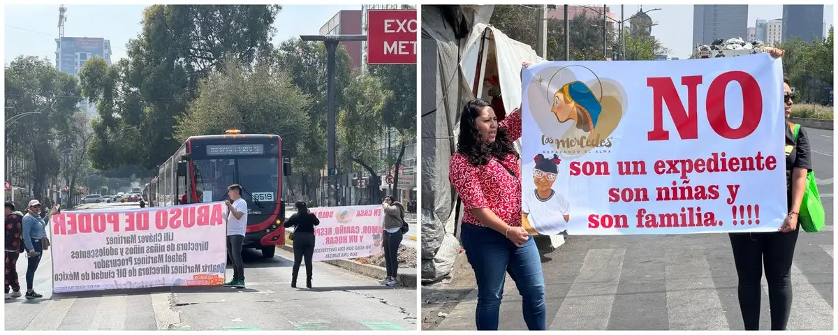 Ciudad de México. Ex egresadas de la casa de Las Mercedes bloquean la avenida Insurgentes en su cruce con Ribera de San Cosme. Foto Víctor Camacho