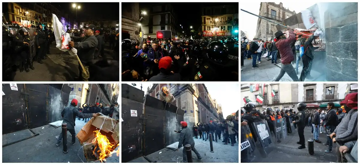 Ciudad de México. Integrantes de la Coordinadora Nacional de Trabajadores de la Educación llegaron a calles del Centro Histórico como parte de la protesta que iniciaron este jueves, para exigir la abrogación de la Ley del #Issste 2007 y la reanudación de la mesa de diálogo con la presidenta Claudia Sheinbaum. Los inconformes rodearon Palacio Nacional e intentaron derribar las vallas que protegen el inmueble. Foto Germán Canseco