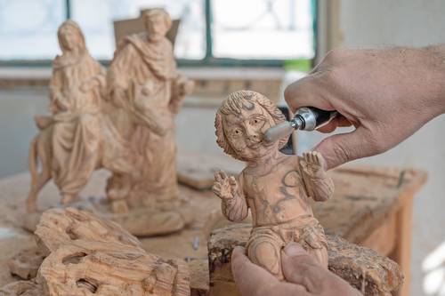 Productores y escultores de figuras de madera luchan por sobrevivir y mitigar la crisis económica en Palestina, derivada de la pandemia mundial de Covid-19. Ante la baja demanda de sus mercancías, provocada por el cierre parcial de establecimientos, los artesanos aprovechan la temporada navideña para reactivar dicho sector. Imagen captada en un taller de Belén.