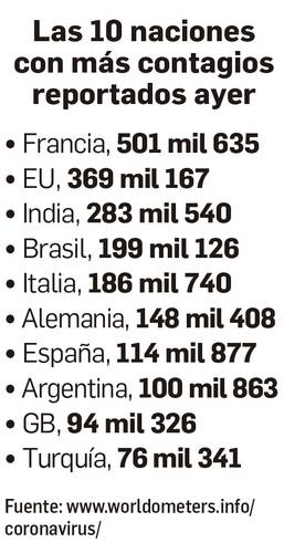 La pandemia ha dejado en el mundo 357 millones 761 mil 744 casos confirmados y 5 millones 613 mil 373 fallecidos, de acuerdo con la Universidad Johns Hopkins.