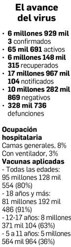 Respecto al avance de la vacunación en el país, la Ssa indicó que la cobertura es de 63 por ciento entre los adolescentes de 12 a 17 años y de 36 por ciento en los niños de 5 a 11, mientras en la aplicación de dosis de refuerzo es de 70 por ciento.