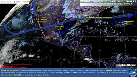 Ciudad de México. Este jueves se prevén fuertes rachas de viento y tolvaneras, lluvias fuertes, así como nevadas, provocadas por los frentes fríos números 35 y 36 y la Séptima Tormenta Invernal de la temporada, dio a conocer el Servicio Meteorológico Nacional (SMN).