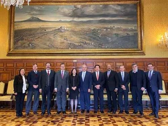 Diputados federales de los partidos Morena, del Trabajo, Encuentro Social y Verde Ecologista desayunan con el presidente Andrés Manuel López Obrador en Palacio Nacional, para abordar la agenda legislativa.