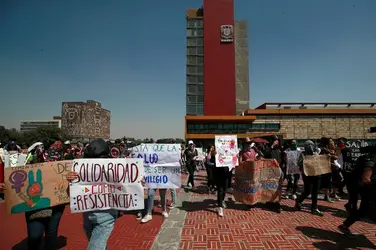 Ciudad de México. Decenas de estudiantes del Colegio de Ciencias y Humanidades Oriente y Sur realizan este jueves una manifestación en Ciudad Universitaria y bloquean la circulación en ambos sentidos de la Avenida de los Insurgentes.