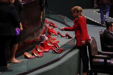 Ciudad de México. Diputadas de Morena, PT y PVEM en el Congreso de la Ciudad de México, junto con el Colectivo Ke Ku Nei (que resisten) realizaron una intervención urbana en las escalinatas del recinto legislativo para visibilizar a las mujeres en el espacio público.