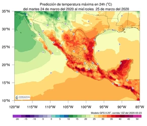 Mientras, las máximas serán de 40 a 45 grados Celsius en Nuevo León, Tamaulipas, San Luis Potosí (oriente), Nayarit, Jalisco, Michoacán, Guerrero, Chiapas, suroeste de Puebla, sur de Morelos y Campeche.