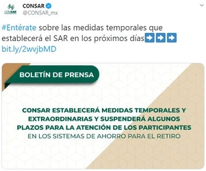 La Consar pidió tranquilidad a los trabajadores, dado que en pasados episodios de turbulencia, los efectos sobre los ahorros en las cuentas individuales de los trabajadores fueron pasajeros, y han tendido a revertirse una vez que la operación de los mercados financieros regresa a la normalidad.