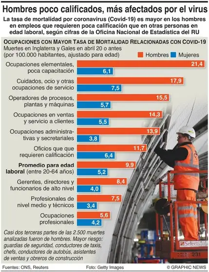 Por su parte, la ONS contabilizó en seis semanas, entre el 21 de marzo y el 1 de mayo, 36 mil 473 casos en cuyo certificado de defunción se inscribió el Covid-19 como la causa probable del fallecimiento.