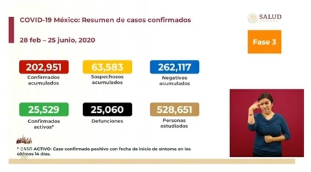 Ciudad de México. Los casos confirmados de Covid-19 en el país sumaron hoy los 212 mil 802, es decir, 4 mil 410 casos más que los reportados este viernes. Los decesos se incrementaron para alcanzar los 26 mil 381, con lo que se notificaron 602 casos en las últimas 24 horas, mientras que los contagios activos de la epidemia en todo el país son 25 mil 700 y los sospechosos acumulados llegaron a los 67 mil 99.