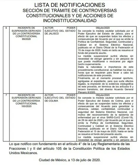Los gobiernos de Colima y Jalisco interpusieron las controversias constitucionales por considerar que el acuerdo de la Sener lesiona las atribuciones de sus administraciones estatales para recurrir autorizar la instalación de plantas eólicas y de energía solar dentro de sus respectivos territorios.