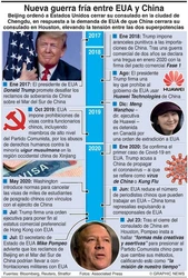 La tensión entre China y Estados Unidos, ya alimentada por las disputas comerciales y las acusaciones mutuas sobre el origen de la pandemia de Covid-19, ha aumentado en las últimas semanas con la imposición por parte de Pekín de una ley de seguridad nacional en Hong Kong.