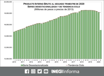 En tanto, se dio a conocer la cifra definitiva del PIB. En el segundo trimestre de 2020 el PIB mostró una caída trimestral de 17.05 por ciento y anual de 18.68 por ciento, ligeramente menor a la estimación oportuna (-17.25 por cientotrimestral y 18.92 por ciento anual).