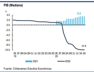 Para 2021, de acuerdo con la Encuesta sobre las Expectativas de los Especialistas en Economía del Sector Privado de septiembre, se estima un crecimiento de 3.20 por ciento, cuando el mes anterior preveían un alza de 2.95 por ciento.