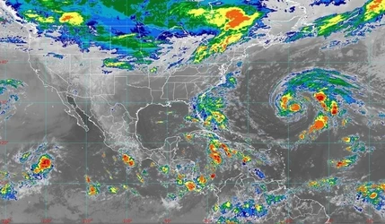 Un canal de baja presión junto al ingreso de humedad causará fuertes y muy fuertes precipitaciones en el sureste mexicano y en la Península de Yucatán. Mientras que las lluvias acompañadas por descargas eléctricas en el occidente del país serán ocasionadas por otro canal de baja presión y la entrada de humedad desde el Océano Pacífico.