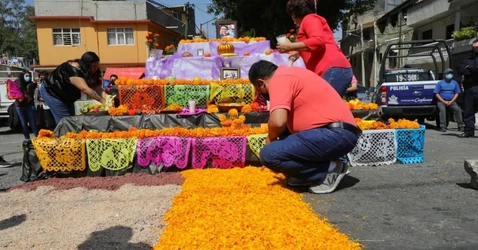 A un costado de las imágenes de 17 mujeres, se encendieron veladores, se adornó con flor de cempasúchil y flor de terciopelo; además de papel picado, fruta y calaveritas de azúcar.