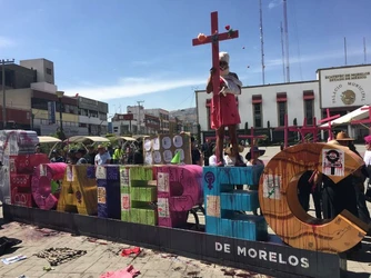 Al grito de "Vivas las queremos", una veintena de hombres y mujeres, protestaron frente a la Fiscalía General del Estado (FGE), donde destrozaron el escudo y el nombre de la dependencia; luego quemaron una manta junto con un puesto de madera instalado por policías ministeriales que acusan de corrupto al fiscal Óscar Montes de Oca y mantienen un plantón desde hace dos meses.