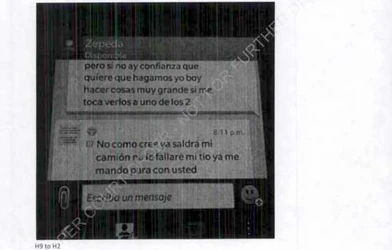 Los investigadores estadunidenses afirman que tuvieron en sus manos miles de mensajes de texto que mostraban que a cambio de sobornos, el ex secretario había asegurado que no se llevaría a cabo ninguna operación militar contra el cartel mexicano del H-2.