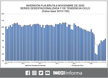 En el penúltimo mes de 2020, el comportamiento positivo de la medición se explicó por el crecimiento de 20.4 por ciento en la adquisición de bienes importados.