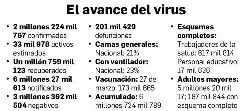 Mientras, la vacunación contra el Covid-19 se reanudó en Nuevo Laredo, Tamaulipas, adonde se remitieron 17 mil 966 dosis que se inocularán en tres módulos a adultos mayores de 60 años entre domingo y lunes.
